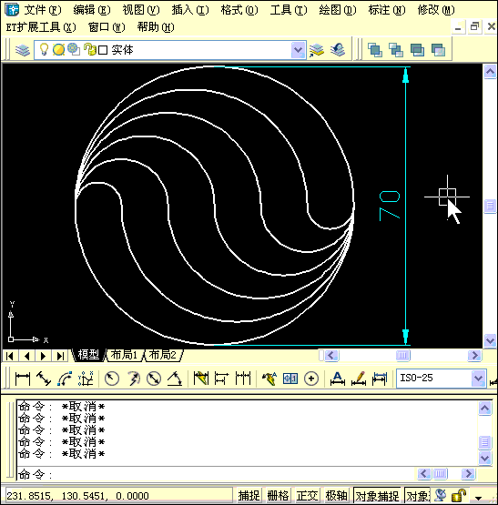 這張圖雖然只給出了一個(gè)尺寸,但借助定數(shù)等分DIV將70長(zhǎng)的直線6等分,還是比較容易畫出來(lái)的。而這里有兩個(gè)不同的視頻,分別是兩種思路,大家可以先看一下。