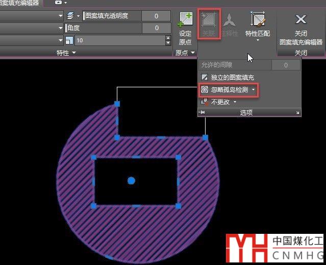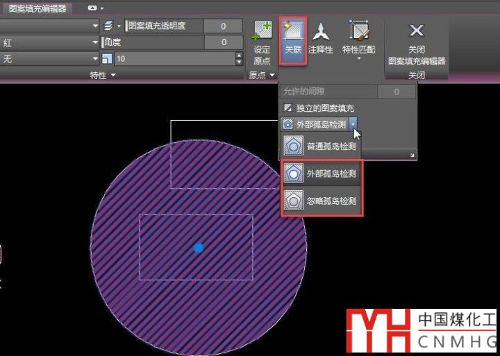 如果填充沒有關(guān)聯(lián)邊界,孤島檢測(cè)即使設(shè)置成忽略孤島檢測(cè),也可以修剪出中空的區(qū)域,如下圖所示。