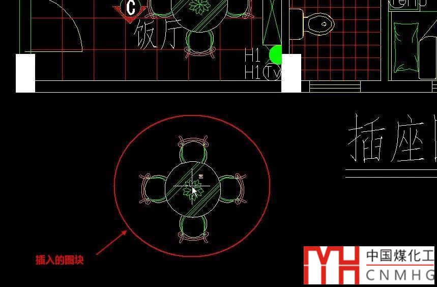 移動(dòng)到合適的位置后單擊,就可以將圖塊插入到指定位置。