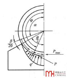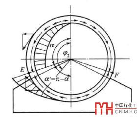 3.2 周向壓縮力一般按圖6中0~α和α~π范圍內(nèi)的積分之差求得,此種算法雖然沒有充分的理論依據(jù),但被廣泛采用,并行之有效。