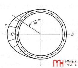 圖2 切向剪切應(yīng)力分布 |