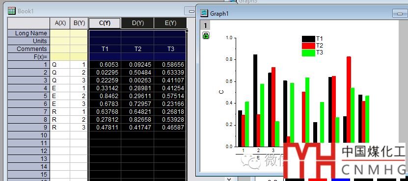 Origin中提供了Grouped Columns/Bars圖的模板,