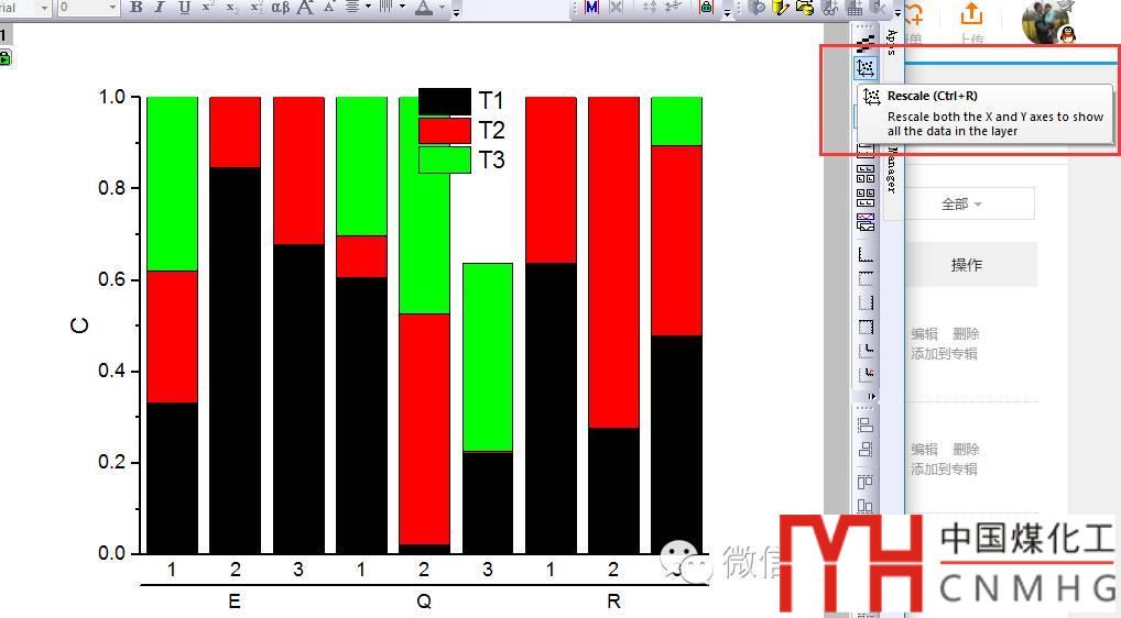 使用Rescale工具或者CTRL+R,使得數(shù)據(jù)全部顯示