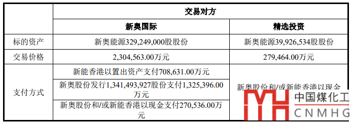 交易的對(duì)方分為兩個(gè)部分:新奧國(guó)際和精選投資。具體交易結(jié)構(gòu)如下表: