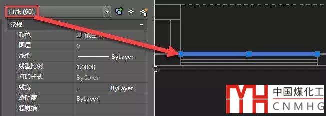 這說(shuō)明在這張圖紙中捕捉是沒(méi)有問(wèn)題的,并不是設(shè)置有任何問(wèn)題,問(wèn)題肯定出現(xiàn)在圖形上。我打開(kāi)特性面板(CTRL+1),框選了一條圖中的一條直線(xiàn),發(fā)現(xiàn)了一個(gè)奇怪的現(xiàn)象,而這就是問(wèn)題的根源,如下圖所示。