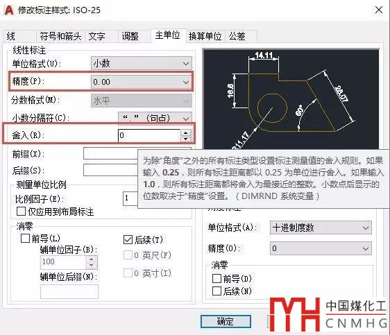 如果我們只是希望標注進行正常的四舍五入,直接設置精度后的小數(shù)點的位數(shù)就可以了,假如我們希望標注是整數(shù),可以將精度設置為0,如圖所示。
