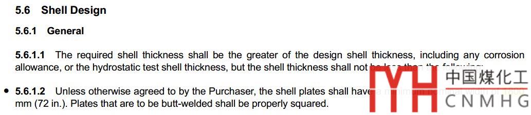 4. 在API的儲罐壁板底板中,也要求拼接的底板寬度至少為1800mm,除非買方同意。