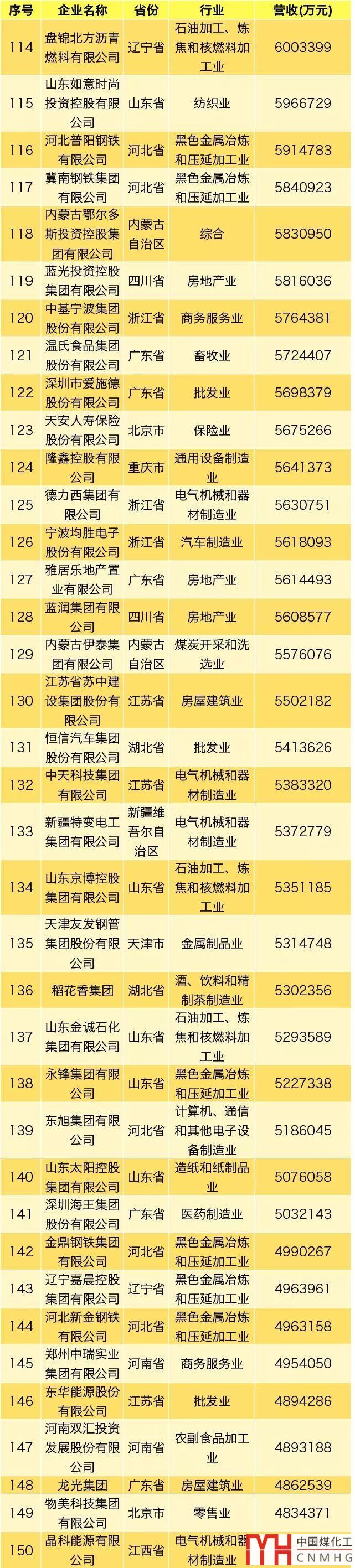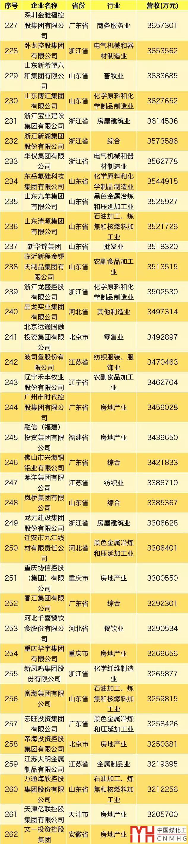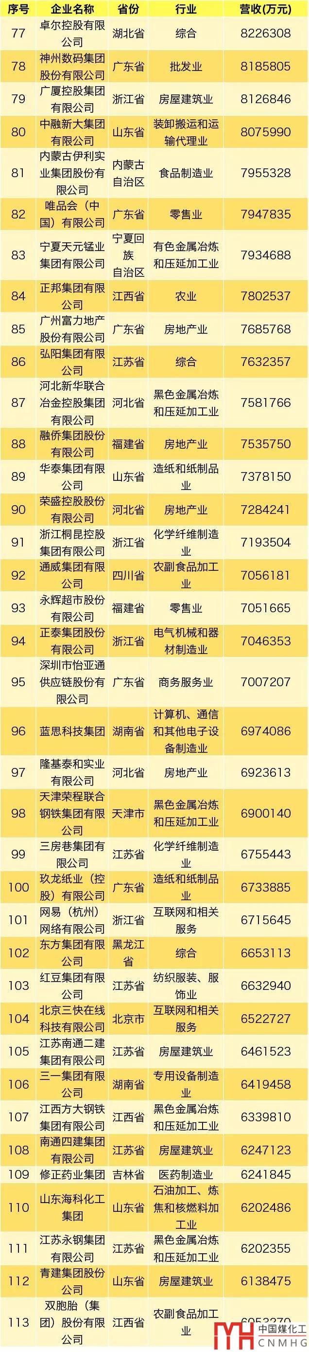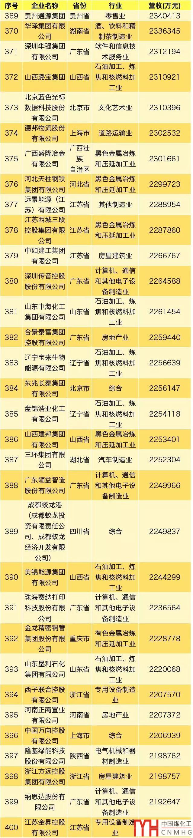 其中,能源領(lǐng)域(不包含化工、焦化類)民營企業(yè)共3家上榜。