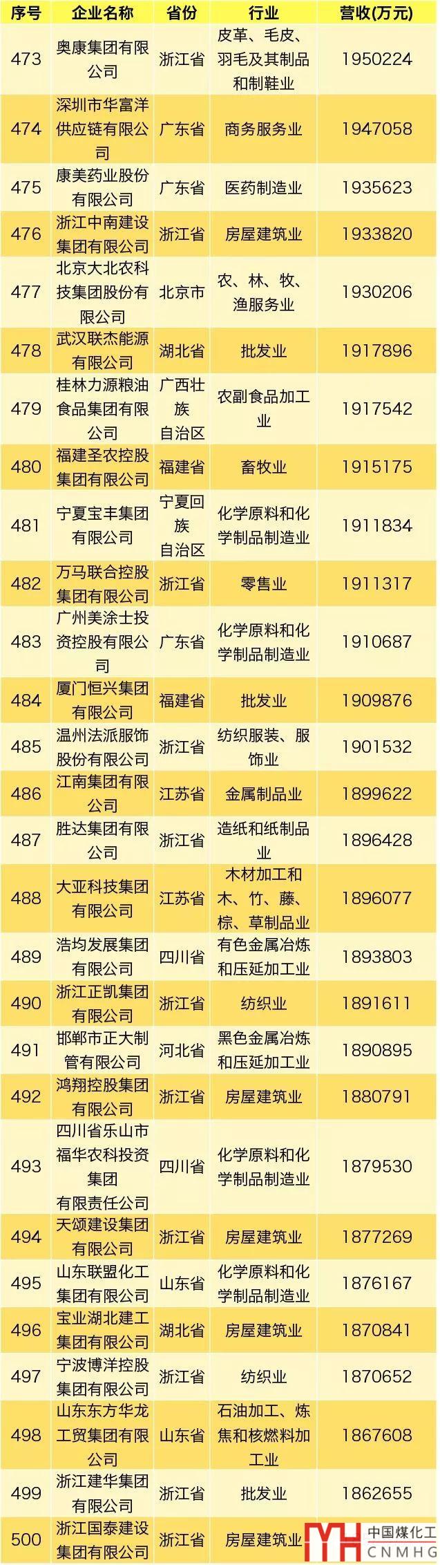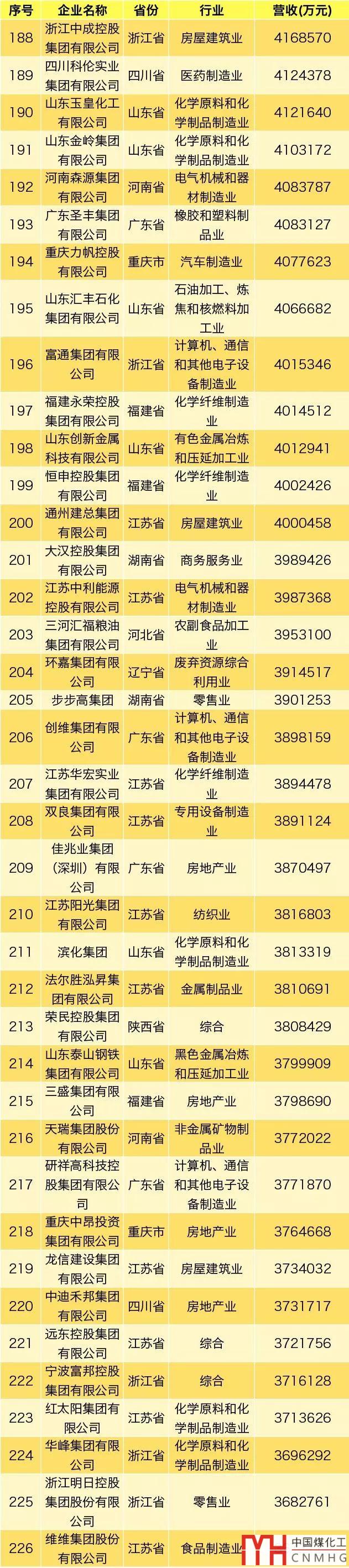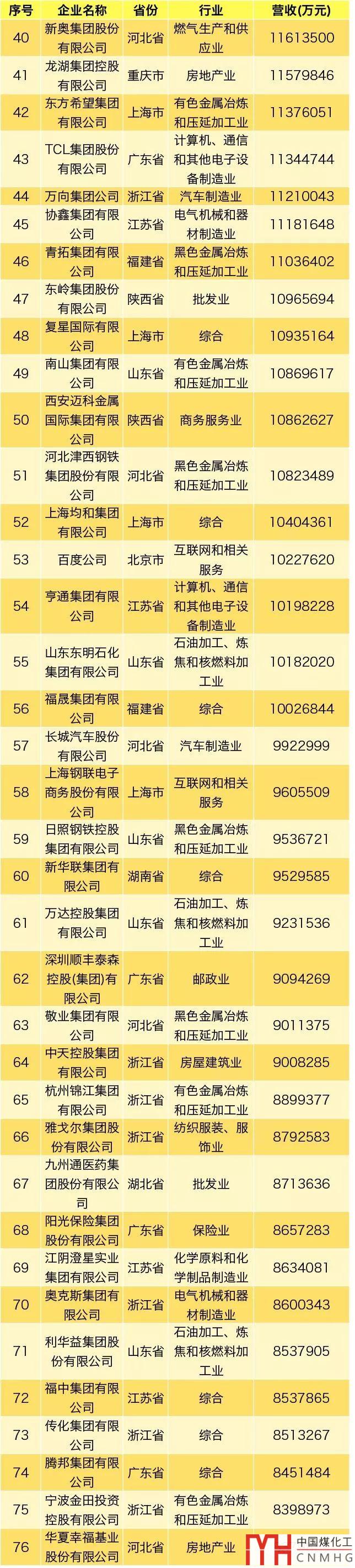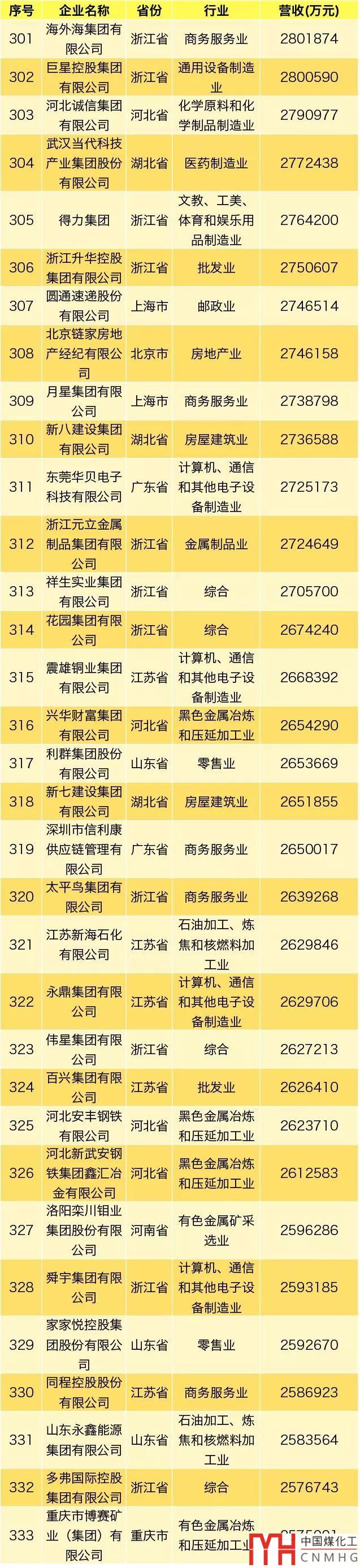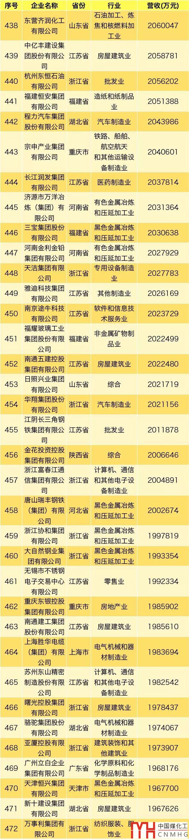 其中,能源領(lǐng)域(不包含化工、焦化類)民營企業(yè)共3家上榜。
