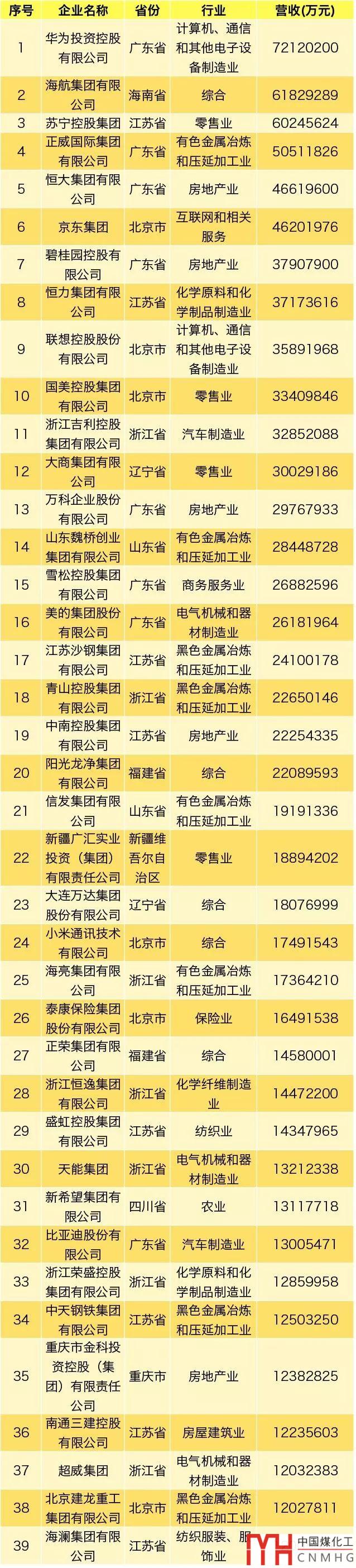 華為榜首,廣匯22位,新奧40位!2019中國民企500強出爐