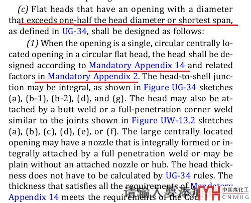 無(wú)論是ASME還是國(guó)標(biāo)都規(guī)定螺栓連接平蓋中心開(kāi)孔超過(guò)一半時(shí)是按法蘭計(jì)算的。見(jiàn)標(biāo)準(zhǔn)原文,有很多做ASME設(shè)計(jì)的說(shuō)沒(méi)有這個(gè)規(guī)定,說(shuō)沒(méi)有的就是對(duì)標(biāo)準(zhǔn)的了解不夠;已經(jīng)明確是按強(qiáng)制性附錄2,如果連強(qiáng)制性附錄2講的是什么內(nèi)容都不知道對(duì)標(biāo)準(zhǔn)基本構(gòu)成重要章節(jié)的了解我也沒(méi)法說(shuō)了。