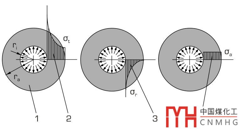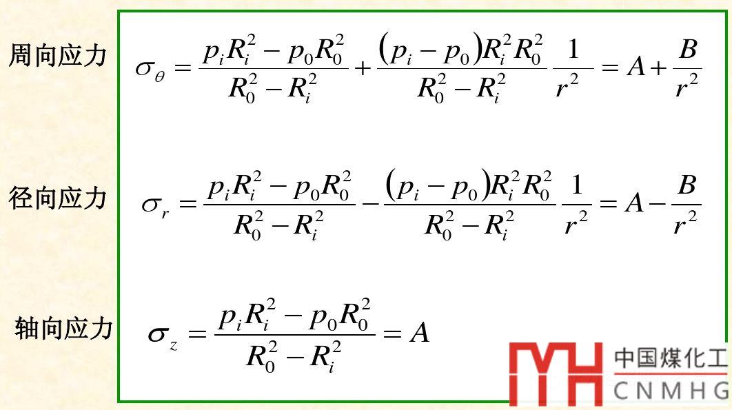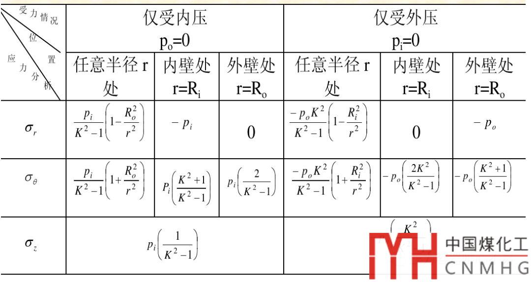 厚壁圓筒的應力分布計算公式是拉美公式,基本上在每本壓力容器設計方面的教材里均有描述。表達如下: