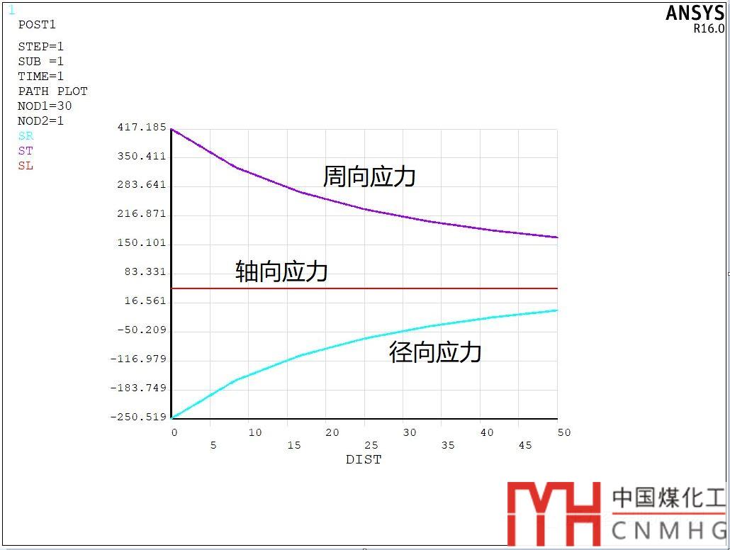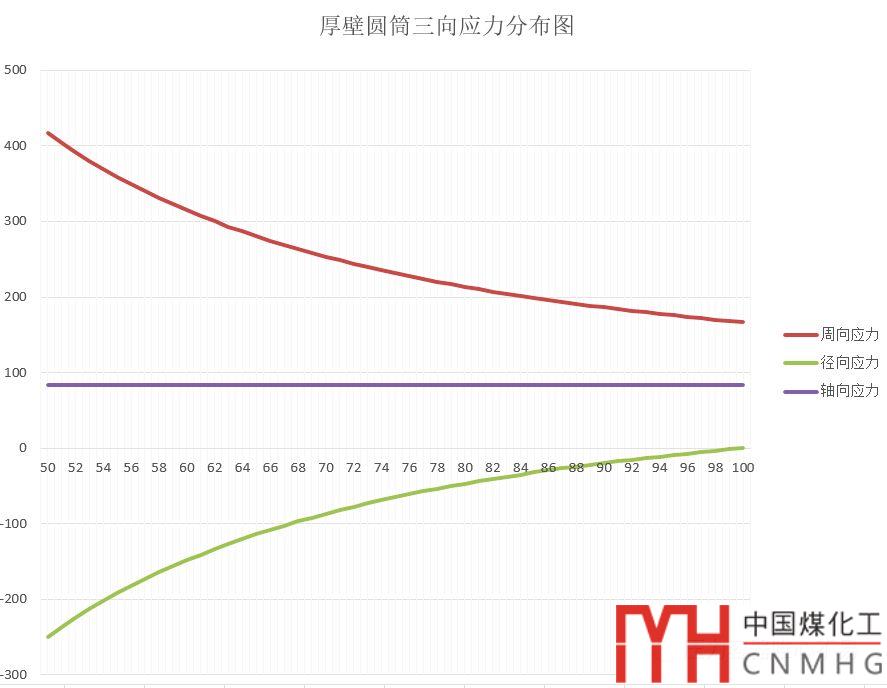 三向應力其分布圖是以任意半徑r為變量,將其內(nèi)壓,內(nèi)外徑代入后獲得。