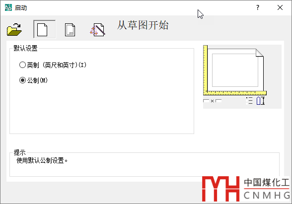其實(shí)無(wú)論對(duì)話框顯示成什么樣式,目的就是選擇一個(gè)樣板(模板)來(lái)生成新文件,這個(gè)樣板文件的擴(kuò)展名就是*.dwt。AutoCAD最常用的模板文件有兩個(gè):acad.dwt和acadiso.dwt,一個(gè)是英制的,一個(gè)是公制的。如果你的CAD版本彈出的對(duì)話框讓你選擇公制和英制,其實(shí)就是讓你在這兩個(gè)文件中選一個(gè)。浩辰CAD只提供了英制和公制的兩個(gè)基本模板:gcad.dwt和gadiso.dwt。AutoCAD還提供了其他很多模板,這些模板中有些是帶圖框的,但因?yàn)槎际怯⑽牡?,我們基本也用不上。?duì)于我們來(lái)說(shuō),如果不繪制英制圖紙的話,彈出上述對(duì)話框中,就點(diǎn)“確定”或“打開(kāi)”就行了。