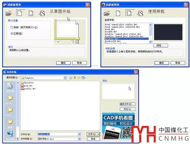 CAD不同版本彈出的對(duì)話框不太一樣,有的彈出的是“創(chuàng)建新圖形”對(duì)話框。有的直接彈出“選擇樣板”對(duì)話框,即使同樣是“創(chuàng)建新圖形”對(duì)話框,顯示的內(nèi)容也不完全相同,如下圖所示。