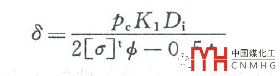 內(nèi)壓橢圓封頭球冠區(qū)的厚度δ2 |
