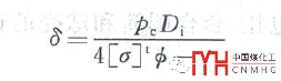 內(nèi)壓橢圓封頭的厚度δh(即δ1) |