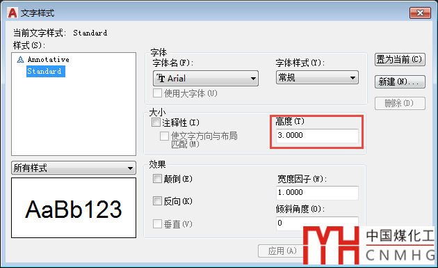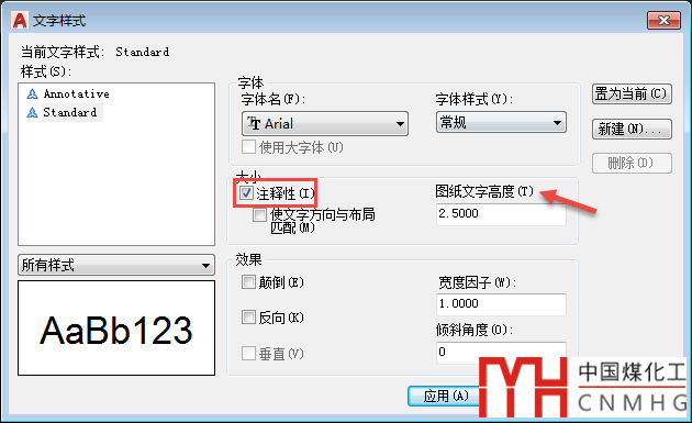 上面兩張截圖中的屬性文字和標(biāo)注樣式都使用了Standard文字樣式,輸入ST,回車,打開文字樣式對話框,就可以找到問題的答案了,如下圖所示。