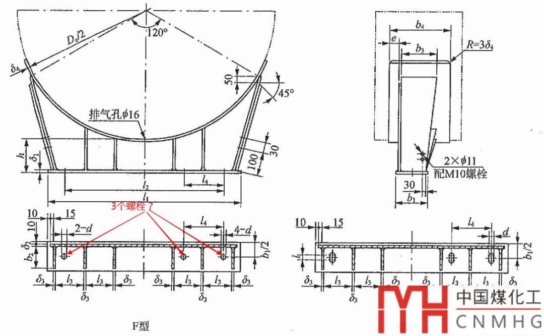 “按照工程經(jīng)驗,地腳螺栓肯定是偶數(shù)個,怎么可能是3個呢,無力吐槽。況且F型還標(biāo)注了“4-d”,說明就是4個。”