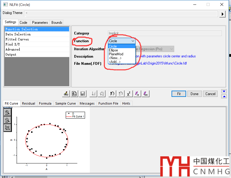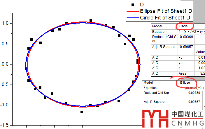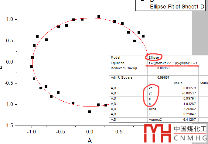 originlab也可以進(jìn)行隱函數(shù)擬合,比如圓和橢圓方程。