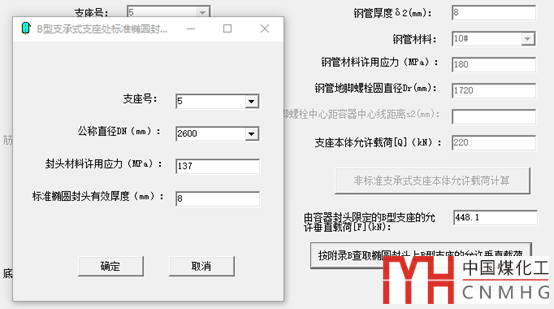 2. 支座對封頭的反作用力≤封頭允許垂直載荷[F]。