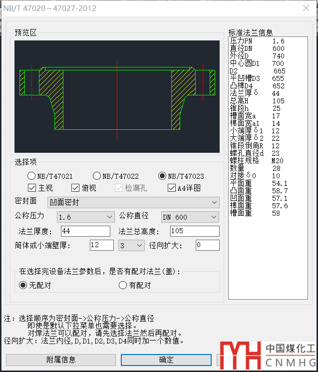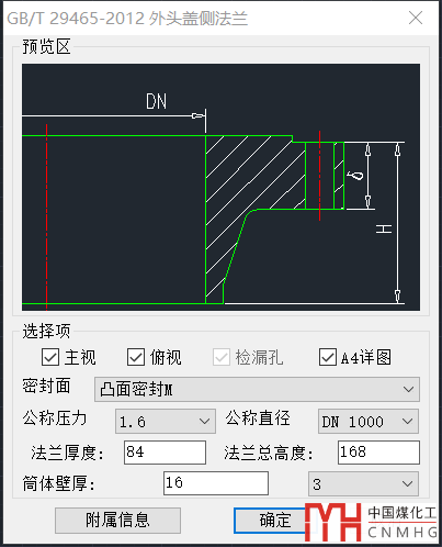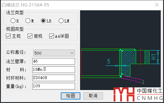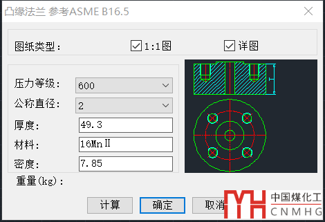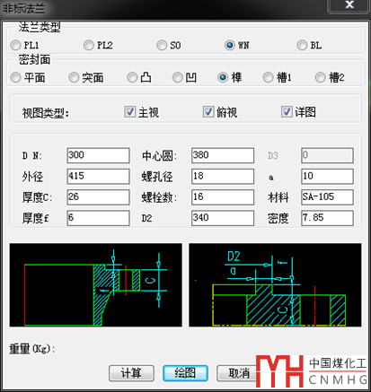 用戶可以參考NB法蘭或者HG的管法蘭,然后程序會把密封面和法蘭的尺寸填寫到對應(yīng)的參數(shù)里,只需要修改少量的數(shù)據(jù),就可以得到1:1的圖和一張加工制造圖。