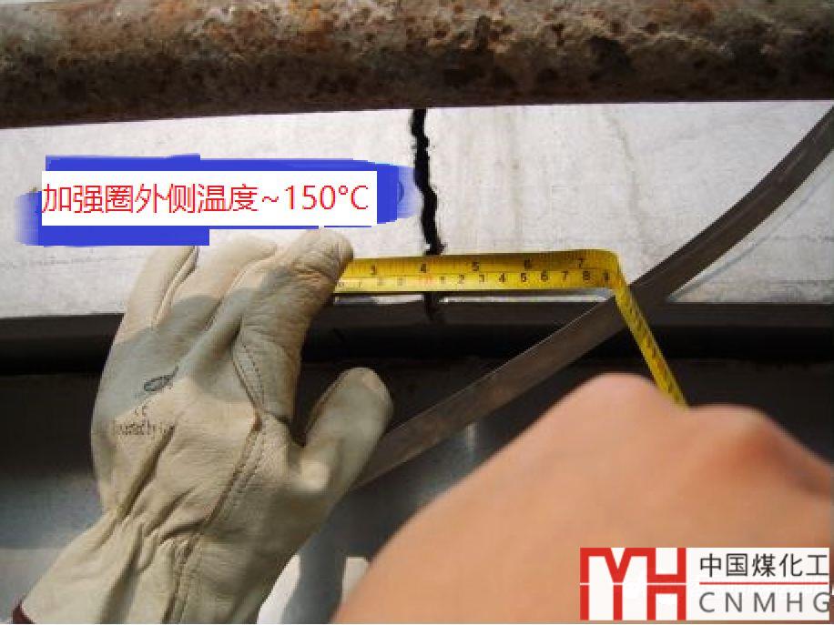 最后設(shè)計(jì)單位出設(shè)計(jì)變更單,要求斷開的部分,用弧形的加強(qiáng)梁繞過(guò)接管與另一側(cè)的加強(qiáng)圈相連,設(shè)備制造廠安排人員到現(xiàn)場(chǎng)按設(shè)計(jì)要求把加強(qiáng)圈修復(fù)。