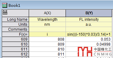 我們用f(x)創(chuàng)建一個(gè)X、Y數(shù)據(jù)表。當(dāng)然若有實(shí)驗(yàn)數(shù)據(jù),請(qǐng)直接采用實(shí)驗(yàn)數(shù)據(jù),這里譚編只是演示解決過程,順便讓大家學(xué)習(xí)一下f(x)功能的使用。