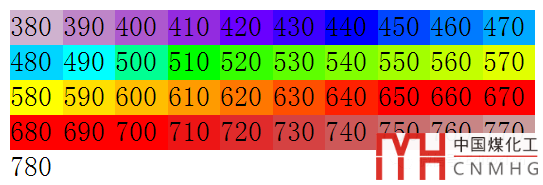于是,得到下圖所示的色帶填充圖。顏色變化并沒有與橫軸的波長對(duì)應(yīng),也沒有實(shí)現(xiàn)漸變過渡。