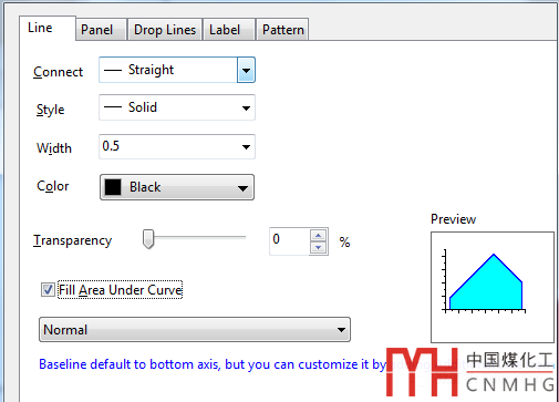 全選數(shù)據(jù),點(diǎn)擊下方折線圖工具,繪制出線圖,然后雙擊曲線,在打開的對(duì)話框中√選Fill Area under Curve,選擇Normal。