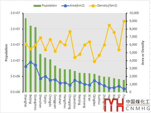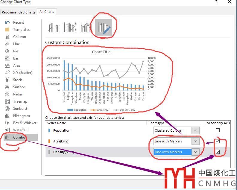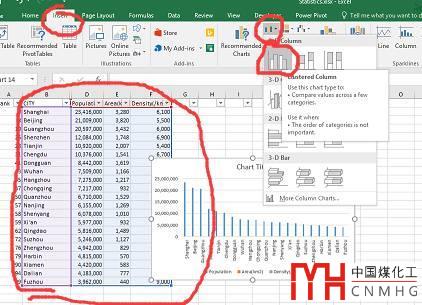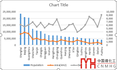 Step-by-step tutorial for excel 組合圖--主要城市人口面積圖