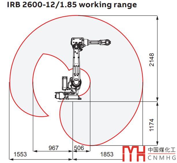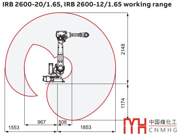 IRB2600短臂型機(jī)器人的工作范圍如下圖: