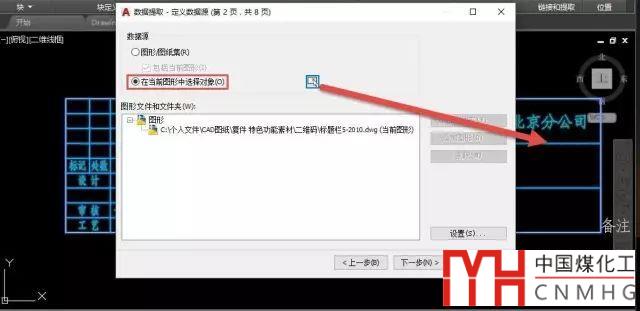 我們可以選擇從整個圖形甚至整個圖紙集中提取數(shù)據(jù),也可以只提取選定圖形的數(shù)據(jù),這里我們單擊"在當前圖形中選擇對象",然后單擊后面的選擇對象按鈕,從圖中選擇要提取數(shù)據(jù)的對象,如圖所示。