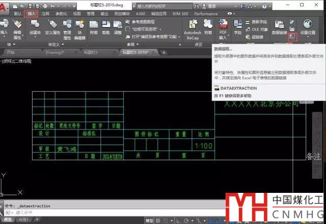 準備一張圖紙,圖紙中有多段線或?qū)傩詨K都可以。數(shù)據(jù)提取功能可以用下面幾種方式調(diào)用,菜單:工具>數(shù)據(jù);功能區(qū)面板的插入選項卡中單擊數(shù)據(jù)提取按鈕,如圖所示;命令行直接輸入EATTEXT。
