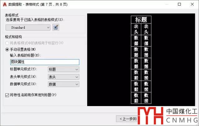 選擇將數(shù)據(jù)提取內(nèi)容作為表格插入到圖中,單擊下一步,就會彈出第7頁,讓我們選擇表格樣式,如圖所示。