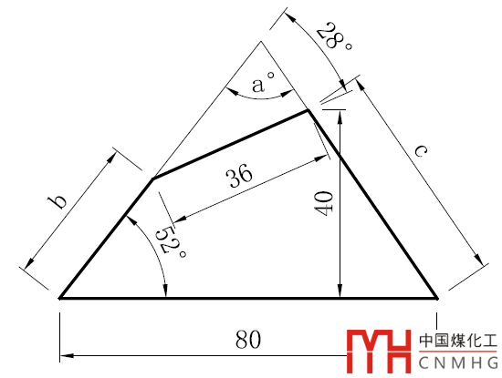 價格左側(cè)52度的斜線從長36的線的起點(diǎn)復(fù)制到端點(diǎn),然后將底部線向上偏移40,找到一個交點(diǎn),圖形就基本完成了,如下圖所示。