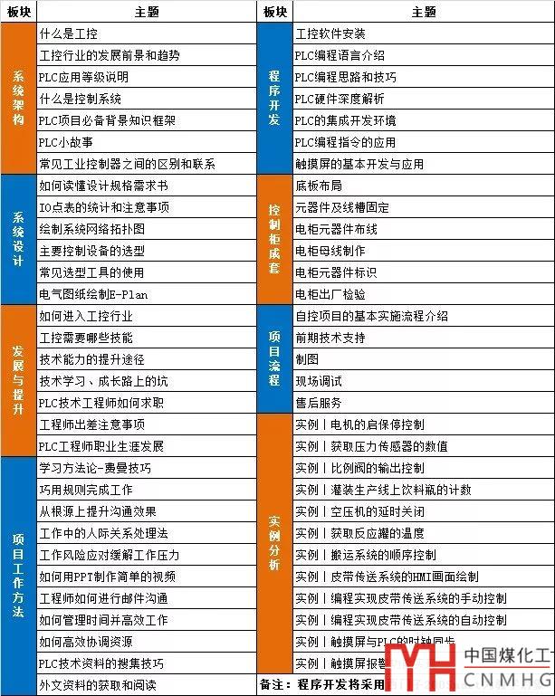 【工控技術(shù)工程師培訓(xùn)課程】采取線上授課、課后答疑、班主任管理的方式,課程包括如下七大板塊:系統(tǒng)架構(gòu)、系統(tǒng)設(shè)計、發(fā)展與提升、項目工作方法、程序開發(fā)、控制柜成套、項目流程、實例分析。課程板塊及具體的課程內(nèi)容如下圖所示: