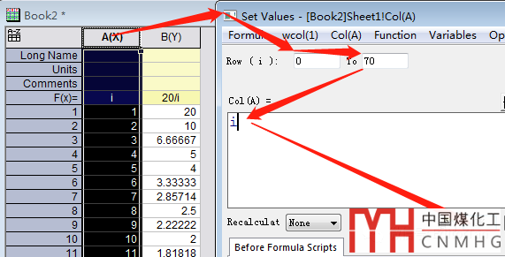 首先我們在一個空的工作簿中添加5列。右鍵點擊X列的列頭,選擇“Set column volues ”0~70。