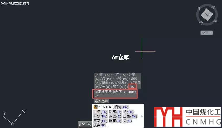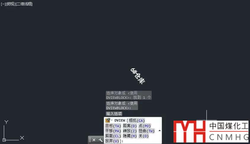 4、回車,確認選擇完了對象,此時圖中只顯示了被選中的文字或直線,命令行會顯示DVIEW的一系列選項。