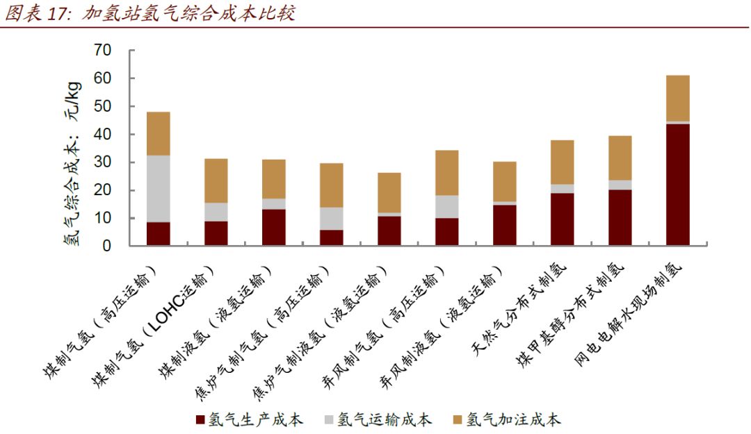 氫能產業(yè)鏈包含制氫、加工、儲存、運輸和加注等環(huán)節(jié),由于氫密度極低,導致各個環(huán)節(jié)成本都比較高,其中最核心的便是制氫成本。