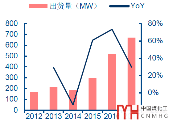 3、續(xù)航里程優(yōu)勢。目前鋰電池或三元電池汽車續(xù)航里程一般在200-300公里左右,特斯拉宣稱能達到500公里(?)。而2014年豐田推出的mirai氫燃料電池汽車加氫3分鐘續(xù)航500km,本田的Clarity也達到了589KM。全球燃料電池按功率出貨規(guī)模