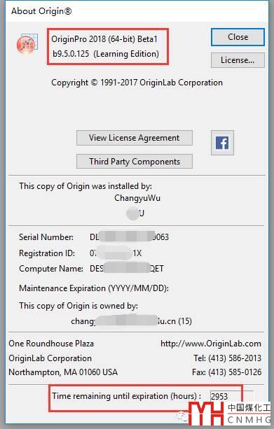 客戶信息:輸入個(gè)人信息和序列號(hào)?!拘蛄刑?hào)可以在申請(qǐng)學(xué)習(xí)版的郵件里查看,也可以在Origin2017 學(xué)習(xí)版的Help->About Origin里查看】