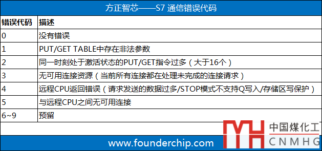 PUT/GET通信的錯(cuò)誤代碼如下面的表格: