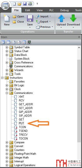 PUT指令用來將數(shù)據(jù)寫入到通信伙伴中,最多可寫入212個(gè)字節(jié);GET指令用來從通信伙伴中讀取數(shù)據(jù),最多可以讀取222個(gè)字節(jié)。在指令列表(Instructions)-通信(Communications)中可以找到PUT和GET指令,如下圖: