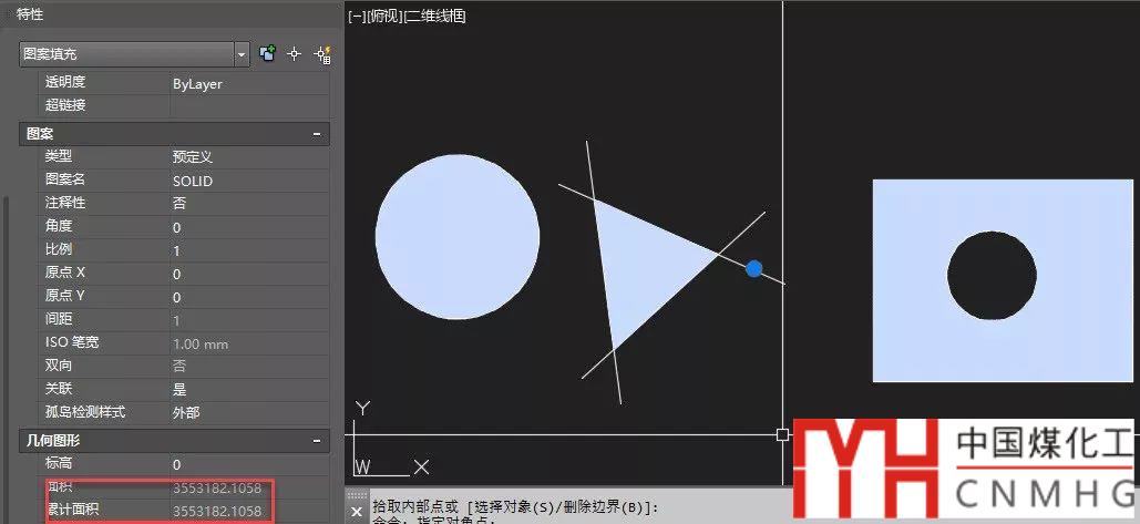 只需要用拾取點(diǎn)的方式在此區(qū)域生成填充,然后通過特性面板或查詢就可以得到面積了。