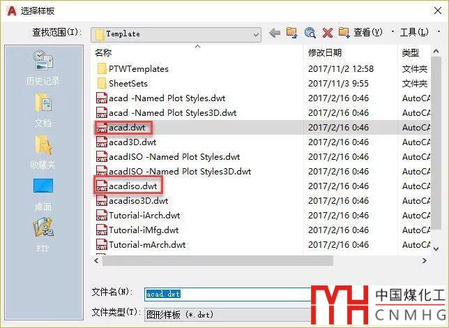 高版本會直接讓我們選擇模板文件*.dwt,其實低版本的英制和公制也是在選擇模板文件,英制對應(yīng)的模板是acad.dwt,公制對應(yīng)的模板文件是acadiso.dwt,如下圖所示。