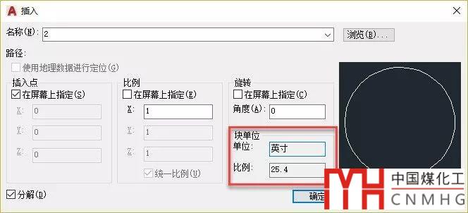 在插入圖塊或外部參照的時候,對話框里會顯示單位和轉(zhuǎn)換比例,當(dāng)然我還可以根據(jù)自己的需要再調(diào)整圖塊比例,如下圖所示。