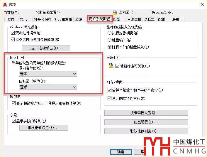 但如果要一次插入多張縮放單位被設(shè)置成“無單位”的圖紙,如果單位跟當(dāng)前圖一致,可以調(diào)整圖紙的單位,如果要插入的圖紙跟當(dāng)前圖的單位并不相同,也不用打開每張圖紙去設(shè)置單位,只需要在選項對話框設(shè)置一下插入比例,如下圖所示。