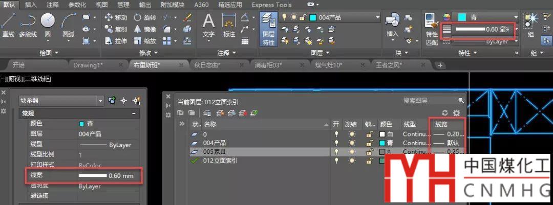 CAD所有圖形都有線寬特性,這個特性可以通過圖層設(shè)置,然后圖形的線寬設(shè)置為隨層(BYLAYER),也可以每個圖形單獨設(shè)置,如下圖所示。