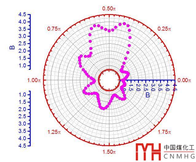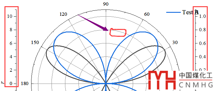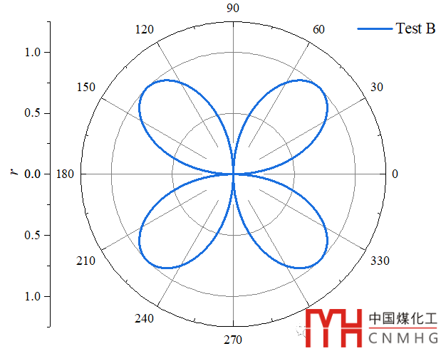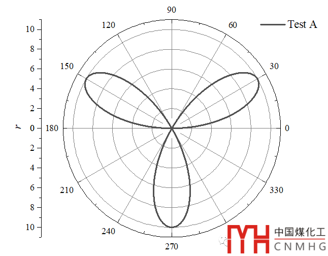 選中Test A數(shù)據(jù)繪制極坐標(biāo)圖,設(shè)置角度坐標(biāo)和半徑坐標(biāo)的格式,改變曲線的顏色和粗細(xì)。【詳細(xì)的教程可后臺回復(fù)極坐標(biāo)或者點(diǎn)擊打開查看詳情Origin(Pro):極坐標(biāo)圖(Polar)】